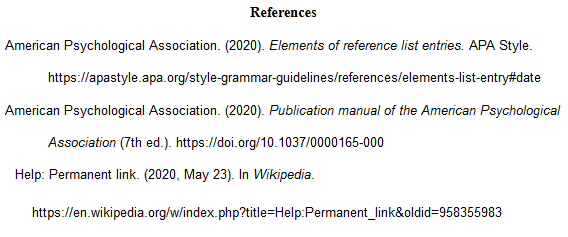 Help: Permanent link. (2020, May 23). In Wikipedia. https://en.wikipedia.org/w/index.php?title=Help:Permanent_link&oldid=958355983